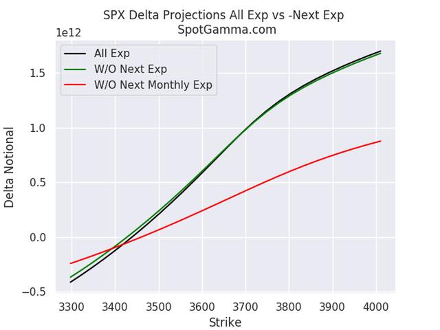 从下图可以看出12月18日到期的SPX期权规模有多大,对于个股而言,大约45%的股票都在12月18日集中了最大的伽马密度,大约25%集中了最大的delta密度。