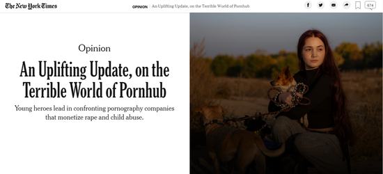 《纽约时报》评论文章作者在标题中表示,“Pornhub做出了改变,但这远远不够”。