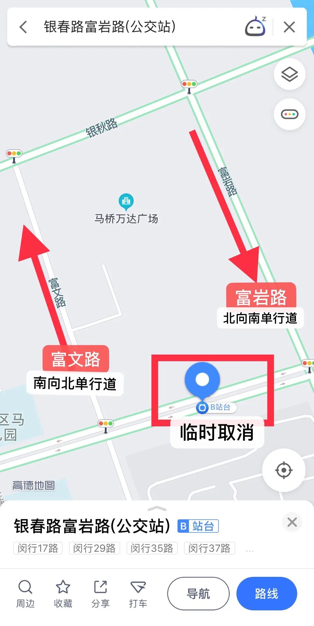 1、为配合万达广场周边交通组织调整的需要,届时富岩路(银春路-银秋路段)将改为北向南单行道,富文路(银春路-银秋路段)改为南向北单行道,计划于2020年12月16日开始实行。