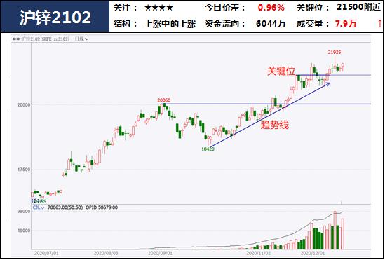 整体来看,国内经济延续复苏态势,市场情绪回暖,且锌供应端紧张问题存在中长期支撑,基本面偏乐观。综合分析,沪锌多单持有中,关键位上方多头思路不变,若盘中拉升新仓继续关注试多机会,有色板块思路一致。