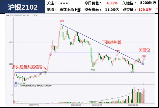 贵金属价格的主要支撑来源于美元疲弱、全球央行未来的维持宽松预期、美国重新推出财政刺激的预期,以及在当前环境下,明年通胀中枢将显著上移,而名义利率抬升空间受限,故实际利率将继续下行从而提振贵金属价格。盘面看,沪银大周期仍是横盘状态,盘中走强上破趋势线,稳健的朋友等待关键位上方的试多机会,目前观望为主。