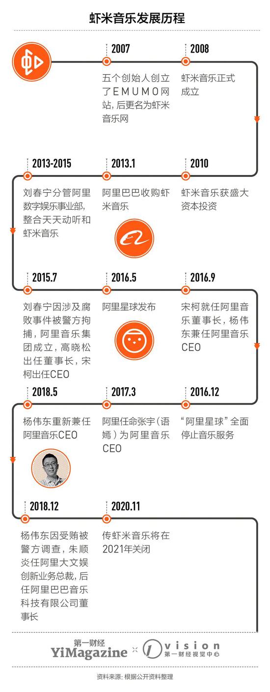 2013年1月,阿里巴巴对外宣布收购当时还只是一个PC端网站的虾米音乐,以此组建“音乐事业部”,向时任阿里集团副总裁吴泳铭(东邪) 汇报。