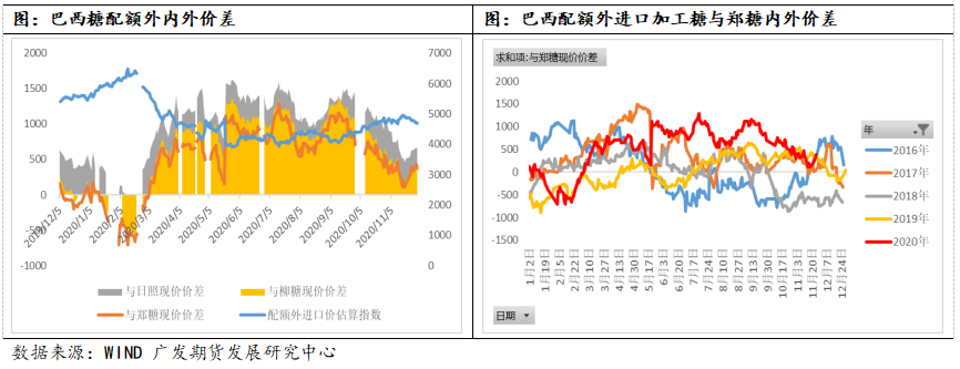 今年6月份,商务部发布公告,将关税配额外食糖纳入《实行进口报告管理的大宗农产品目录》,自2020年7月1日起实行进口报告管理。中国糖业协会负责办理原糖加工生产型企业基本情况备案,中国食品土畜进出口商会负责办理食糖进口国营贸易企业和其他企业基本情况备案,商务部决定最后的审批结果。从量的角度来看,由于进口审批是否能通过由商务部来决定,因此进口总量是有限的,不是想进口多少就进口多少,明年的进口量出现天量增量的可能性不大。但是基于今年进口许可证发放的情况来看,似乎有传达出将逐步放开进口的讯号,那么,明年的进口量预计不会少于今年的数量。