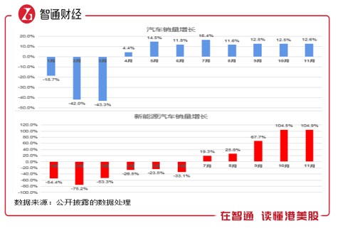 智通财经了解到,中汽协近期发布了11月份汽车销量数据,11月国内汽车销量277万辆,同比增长12.6%,连续7个月实现双位数增长,但受第一季度的拖累,前11个月销量2247万辆,同比下降2.9%。此外,11月新能源汽车销量20万辆,同比增长104.9%,连续两个月三位数增长,前11个月,新能源车销量104.9万辆,同比增加3.9%。