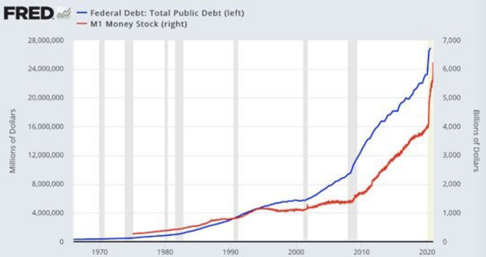 另一个值得关注的因素是美国负收益债券的爆炸式增长。上周创纪录的17.5万亿美元债券的名义收益率不到0%,这使得金条和银条对寻找安全感的投资者来说更具有吸引力。美国M1货币供应量在过去十年翻了两番。这些新印出来的钱流向了银行和财政部,以维持股票和债券的估值。如果这些钞票的一小部分流入贵金属市场,那也将是一件值得关注的事情。