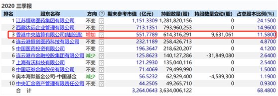 素有“聪明钱”之称的北上资金在三季度增持了恒瑞医药,其持股为例为11.58%,系恒瑞医药第三大股东。