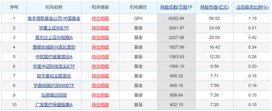 数据显示,截至2020年三季度末,共有693 家机构持仓恒瑞医药,其中666家基金合计持股比例为7.09%,1家QFII奥本海默基金公司-中国基金持股比例为1.19%,位居机构持股之首。