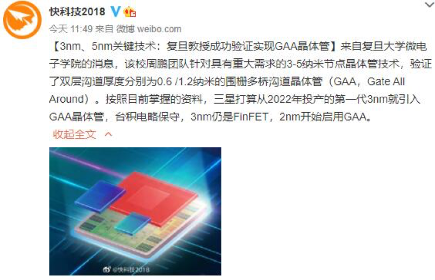 昨天,据快科技,复旦大学微电子学院也传来好消息。该校周鹏教授的团队成功攻克难题,在3nm芯片关键技术上取得重大突破。据悉,周鹏教授的团队针对具有重大需求的3-5nm节点晶体管技术,验证了双层沟道厚度分别为0.6/1.2nm的围栅多桥沟道晶体管,实现低泄漏电流与高驱动电流的融合。中国芯未来可期。