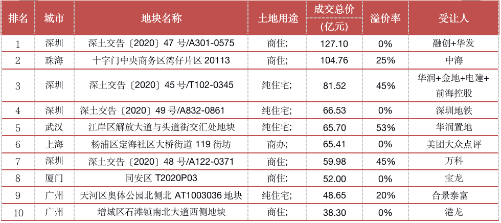 临近年末,深圳、广州、武汉等城市近来的土地出让十分积极,稀缺优质宅地吸引多家房企竞拍,成交溢价率均超过了20%以上,地价明显上涨。典型如武汉江岸CBD宅地成交楼板价达到30558元/平方米,创下武汉历史楼板价新高。