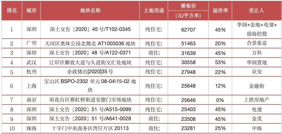 不仅是深圳,优质稀缺地块对房企仍有很强的吸引力,如武汉江岸滨江商务区纯宅地,由于有一线临江优势且区位十分优越,其起拍价就接近此前的单价地王楼板价,最终在经过321轮激烈的争夺后才由华润置地竞得,成交楼板价超过3万元/平方米,成为武汉首宗地价破3万元/平方米的宅地。