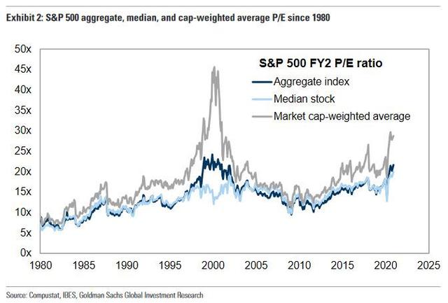 也就是说,特斯拉的加入将对标普500市值加权市盈率产生更大的影响,将使市值加权市盈率从28.9倍上升到31倍。