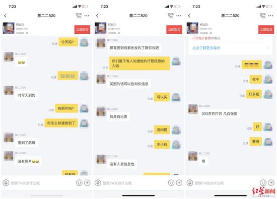 记者调查发现,网络上可购买公众人物的各类隐私信息。一名卖家的朋友圈内,长期更新大量艺人的行程信息,其表示,只需200元,便可买到当红人气偶像的身份证号。
