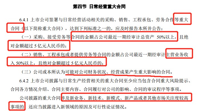 之所以说怪,是因为按照《深交所上市公司规范运作指引》第四节6.4.1的规定,重大合同标准,要占到总资产或者主营业务收入的50%以上,且绝对金额超过5亿元,才达到披露标准。这样规定的主要考虑或许是因为,合同本来就具有很大不确定性,而且合同金额和实际能产生利润的金额相差会非常大,啥合同都披露,会误导投资者。