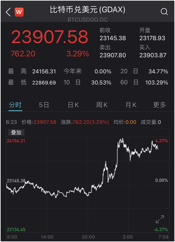 比特币突破24000美元