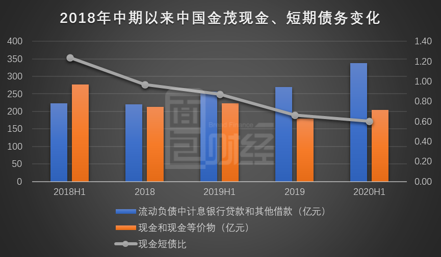 上升的计息银行贷款和其他借款以及下降的现金和现金等价物使得中国金茂的现金短债比指标自2018年底以来持续低于1倍。未来,公司或需通过加速回款、减少短期债务等方式实现现金短债比大于1倍的监管要求。