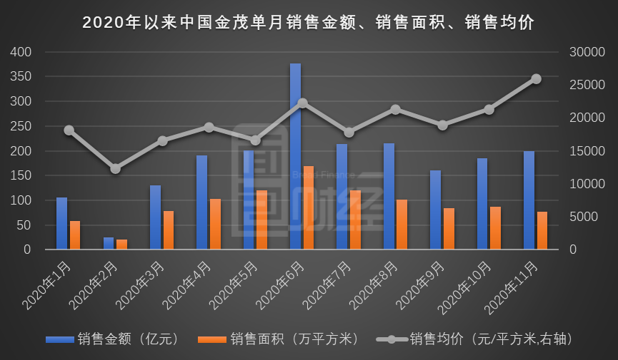 另外值得一提的是,中国金茂11月的销售均价为25951.42元/平方米,创2020年以来单月新高。