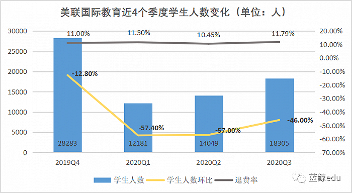 此外,近4个季度,美联国际教育的退费率始终居高不下,退费问题始终考验着美联国际教育的现金流。