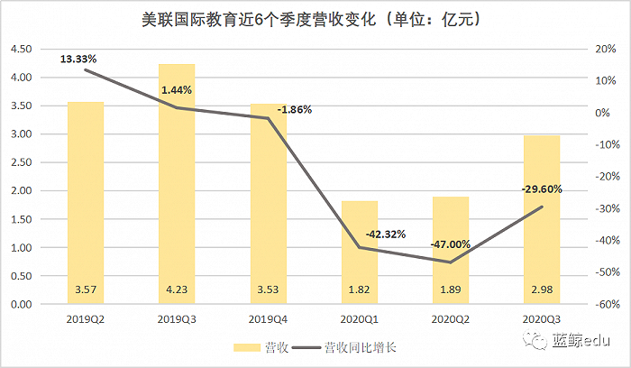 美联国际教育2020财年前3个季度营收仅为6.69亿元,该公司的Q4营收需达到7.79亿元才能与2019年营收持平,从目前的状态来看,2020财年营收可能还会出现大幅下滑。