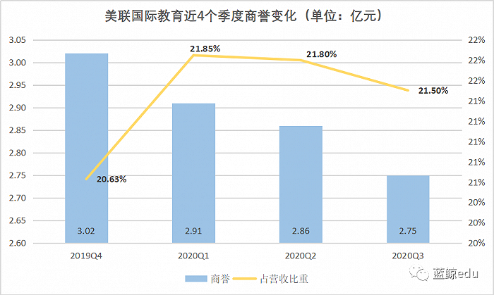 除此之外,在总资产中,商誉一项在近4个季度中均占比超过20%,而在美教育中概股中,主营线下业务的公司,商誉如此之高的屈指可数。商誉值过高,对上市公司的资产结构或将造成非常不稳定的负面影响。以A股的先例来看,商誉减值往往会造成巨额亏损。比如,2017年,勤上股份因为龙文教育计提了高达4.2亿元商誉减值。2018年,和晶科技因澳润科技计提3.75亿商誉减值。此外,三盛教育、秀强股份、昂立教育等等都曾因商誉减值问题出现巨额亏损。