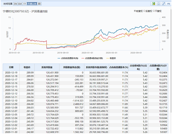 数据显示,目前陆股通持有约1.26亿股宁德时代股票,持股占公司自由流通股本的比例超过10%,持股市值已接近400亿元。