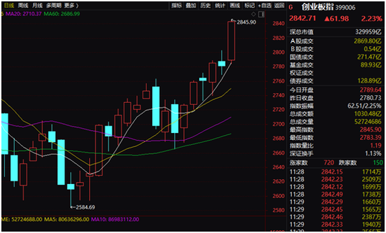 在宁德时代大幅上涨的同时,其他创业板股票也大幅上涨,截至21日上午收盘,创业板指数涨幅超过2%。