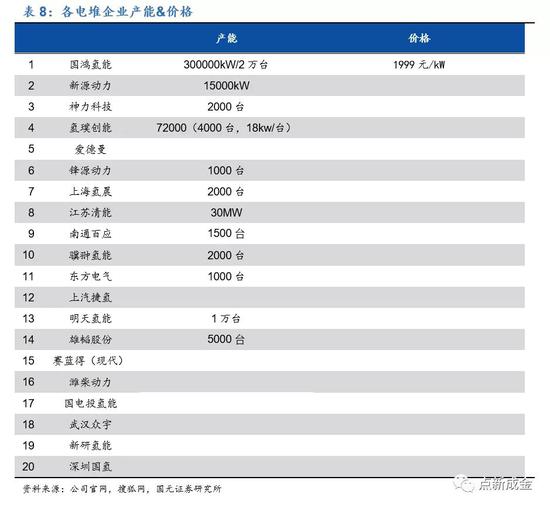 具备先发、技术和成本优势企业将赢得长跑。燃料电池系统行业资金壁垒较低,2018年产业开始急速升温,创业企业大量增加,产能也随之快速上升,根据统计2019年国内燃料电池系统产能超过1.6万套;然而产业尚处于导入期,规模化应用时期尚未到来,燃料电池系统产能短期相对富余,但并不严重。