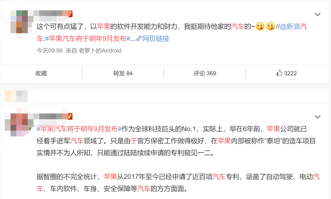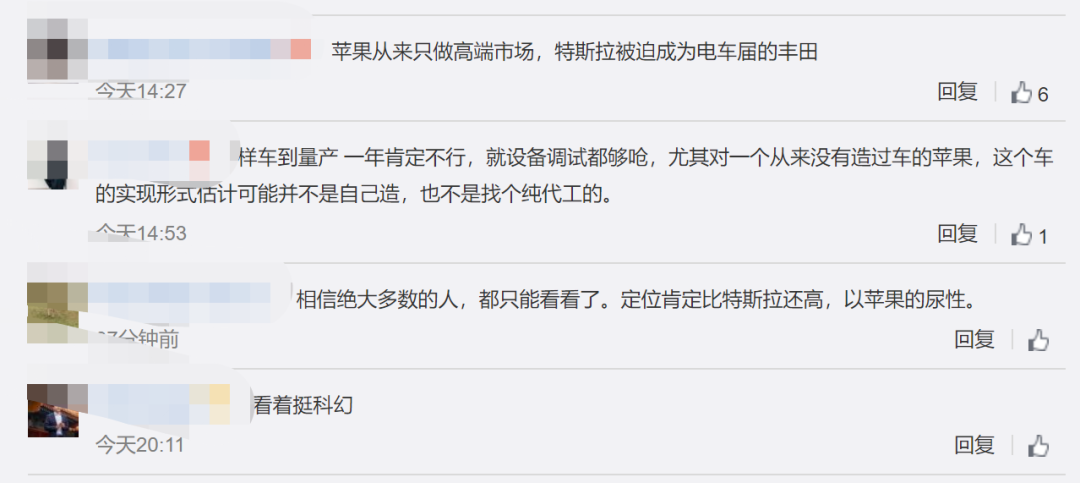 不少网友表示,以苹果的软件开发能力和财力,期待苹果的汽车。