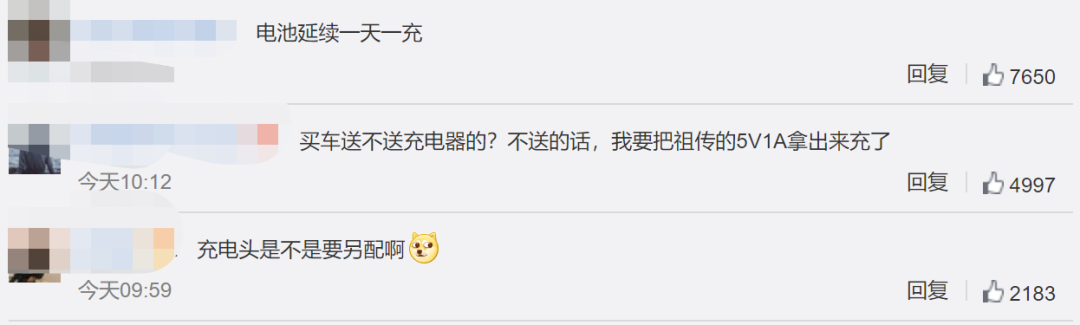 但也有不少网友调侃,买车是不是不送充电头……
