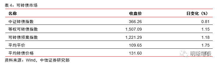 12月21日转债市场,中证转债指数收于366.26点,日上涨0.81%,等权可转债指数收于1,507.09点,日上涨1.15%,可转债预案指数收于1,221.29点,日上涨1.18%;平均平价为109.65元,日上涨1.75%,平均转债价格为131.60元,日上涨1.68%。319支上市交易可转债(辉丰转债除外),除万青转债、岱勒转债、江银转债、长集转债、兄弟转债和本钢转债横盘外,208支上涨,105支下跌。其中英科转债(16.08%)、中矿转债(11.63%)和嘉泽转债(10.49%)领涨,凌钢转债(-3.96%)、正元转债(-2.44%)和奥瑞转债(-2.10%)领跌。316支可转债正股(*ST辉丰除外),除威派格、奇正藏药、新疆交建、佳力图、利群股份、百川股份、东风股份、山鹰国际、烽火通信、北方国际、九洲集团、哈尔斯、现代制药、贵广网络、台华新材、华源控股、兄弟科技、洪涛股份、国泰君安和内蒙华电横盘外,215支上涨,81支下跌。其中万孚生物(10.26%)、铁汉生态(10.23%)和隆基股份(10.01%)领涨,鸿路钢构(-4.82%)、塞力医疗(-4.09%)和天目湖(-3.13%)领跌。