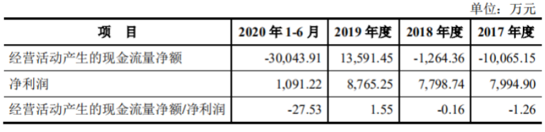 尽管营收利润有所提高,但《投资时报》研究员注意到,报告期内该公司经营活动产生的现金流净额却未能伴随净利润同步提升。据招股书显示,报告期内经营活动产生的现金流量净额分别为-1.01亿元、-1264.36万元、1.36亿元及-3.00亿元,上下浮动较大。
