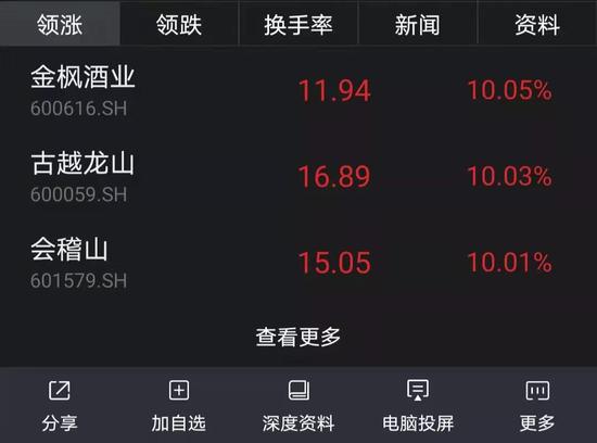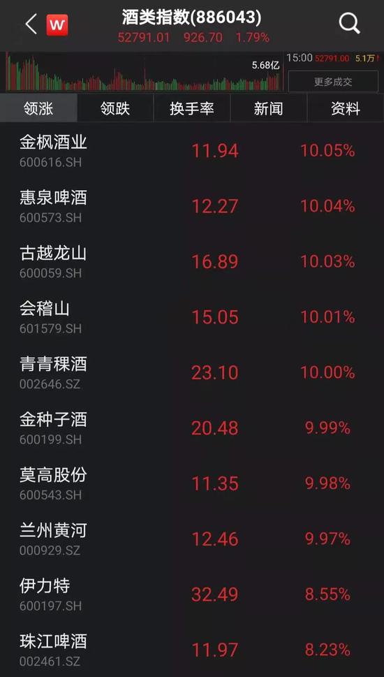 “茅五洋泸”齐创新高,金种子酒、金枫酒业等多股涨停。