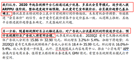 目前看行业提价趋势已经明确,短视频的广告风流影响也在减少,长视频会员收入及广告收入有望逐渐改善。国盛证券认为,由于用户数和用户时长的增长已平滑,综合性视频平台内容投入体量已基本达到天花板,叠加 ARPPU 值的提升,视频行业将进入到毛利率及现金流不断改善的阶段。