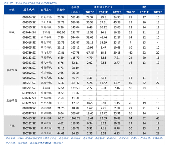 从中信板块来看,除媒体(17x)、文化娱乐(22x)外,其他子版块均处于 20-50x 之间。从各子版块来看,其中游戏(20x),出版(13x),广播电视(29x),广告营销估值 34x,院线(86x),电影(42x)。游戏行业整体估值处于底部位置。