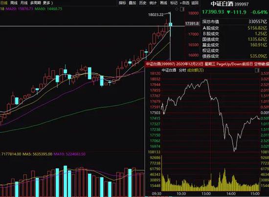 龙头股贵州茅台、五粮液表现相对稳定,不过盘中仍有一定幅度跳水,截至收盘,贵州茅台下跌2.09%,五粮液下跌1.45%。