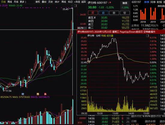 伊力特盘中一度逼近涨停,但其后连续几波跳水,使得股价快速由涨转跌,盘中跌幅一度逼近8%,全天振幅高达16.96%。在股价巨振的同时,伊力特也急剧放出巨量,全天成交27.6亿元,创该股历史最高成交额。