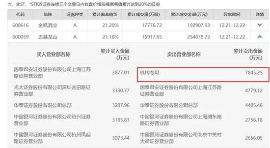 比如金枫酒业连续两天登上龙虎榜,但均没有机构席位现身。