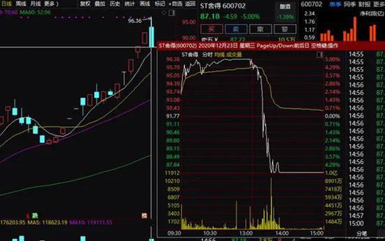 ST舍得(维权)则直接上演“天地板”,全天成交16.2亿元,较上一交易日放大近一倍。