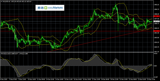 12月24日,昨日美元下跌后涨,受到英欧即将达成贸易协议的影响,美元结束3连日线上涨,英镑领涨非美货币,盘中大涨200点左右。黄金则大幅震荡,先是回撤1856美元支撑,后在美元下跌的影响下黄金反弹到最高1879美元附近。道指则在风险偏好情绪推动下重新获得上涨动能,一度涨幅达到300点左右。