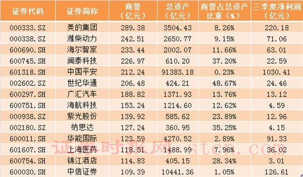 据数据显示,截至今年9月底,A股商誉总值为1.28万亿元,其中,美的集团、潍柴动力、海尔智家、中国平安等上市公司商誉超200亿元,但相对于公司总资产,占比较小。广汇汽车、海航科技、紫光股份、纳思达等多家公司商誉超100亿元。