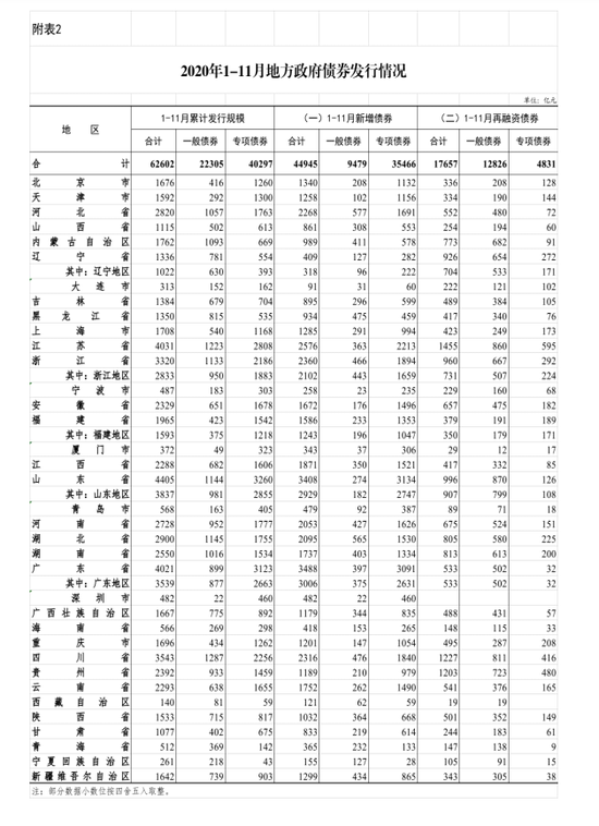原标题:2020年11月地方政府债券发行和债务余额情况