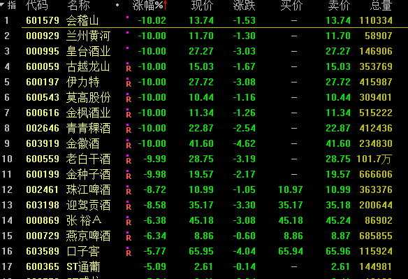一路突飞猛涨酿酒板块,继昨日午后出现一波跳水行情后,今日早盘再度集体回调,板块指数一度大跌超2%。