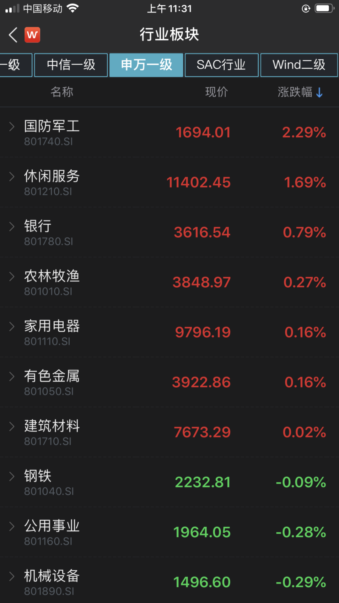 行业板块方面,28个申万一级行业早盘多数下跌。国防军工、休闲服务板块逆势上涨,截至午间收盘分别收涨2.29%、1.69%,涨幅居于前两位。商业贸易、纺织服装、传媒、通信、计算机等板块跌幅居前。