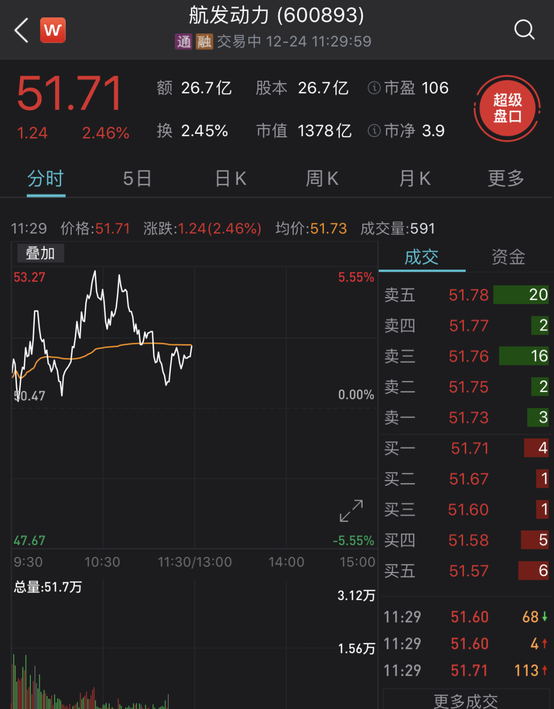 值得关注的是,千亿市值股也表现不俗。中航沈飞涨4.05%,最新市值为1053亿元。航发动力涨2.46%,最新市值为1378亿元。