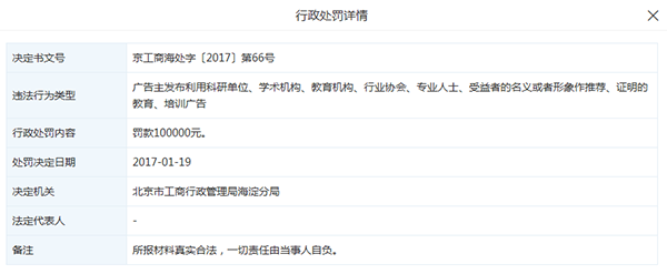 2017年1月,北京简单科技有限公司曾因发布利用科研单位、学术机构、教育机构、行业协会、专业人士、受益者的名义或者形象作推荐、证明的教育、培训广告,被北京市工商行政管理局海淀分局罚款10万元。