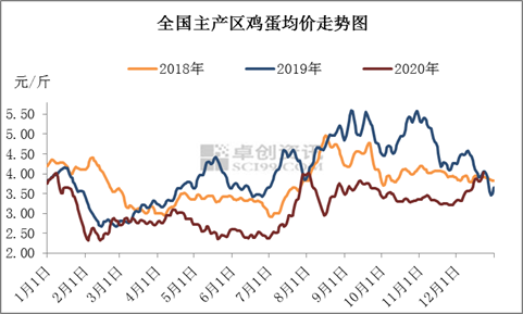 但后市春节利好将开始逐渐显现,需求方面仍有支撑,加之供应存在利好,蛋价仍有继续上涨可能,卓创资讯预计1月上旬蛋价或上涨至4.20-4.30元/斤。