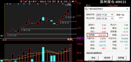 郑州煤电也是连续出现涨停,12月18日至今日收盘已收获5连板,短短25交易日内股价更是暴涨200%。郑州煤电今日成交额16.04亿元,成交量较昨天增加26%左右。
