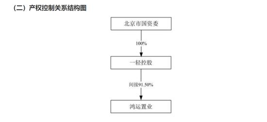 而另外一家公司鸿运置业,实际上也是控股大股东间接持股的企业,也就是说,其背后的资方仍是北京市国资委。