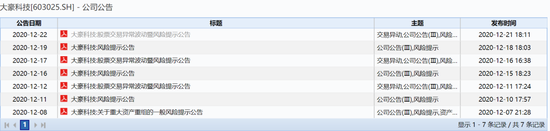 在交易所下发问询函前,大豪科技自己已经连发多个风险提示公告,且对于投资人质疑的内幕交易也发布了一些公告澄清,称公司经过查询,从5月25日至12月17日期间,均未发现上市公司及其股东、交易对方的董监高、中介人员及其直系亲属等,有交易该公司股票的行为。