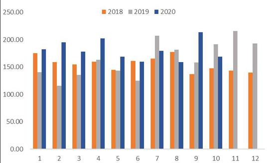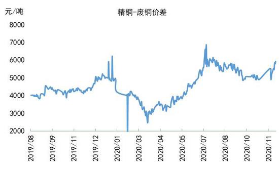 2020年第十三批限制类公示表铜废碎料核定进口量为5980吨,当前废铜批文总量已累计达88.55万吨,为实现2021年固体废物零进口的目标,后续批文量继续保持低位;另外再生黄铜原料可自由进口细则开始实施,政策的解读和执行仍需要一定时间。10月废铜制杆企业开工率为69.10%,环比下降5.95个百分点,对总体产量有一定的影响。