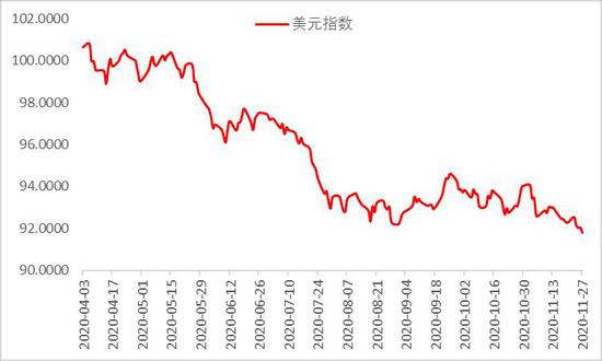 小结:全球经济呈现恢复态势。拜登当选、疫苗研制取得进展让市场情绪偏向乐观,市场对美国展开新一轮经济刺激方案的预期增强,美元指数持续下行,推升铜价。